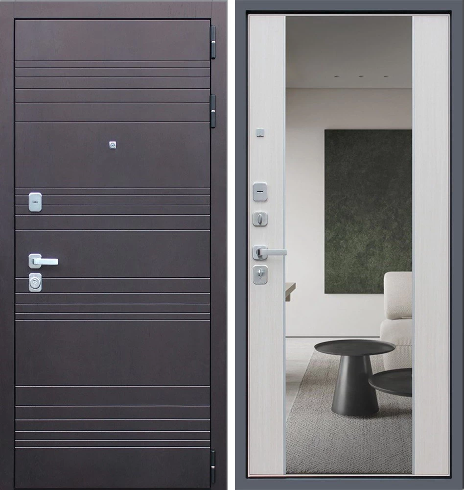 Надежная входная Дверь Дуэт с зеркалом премиум класса по цене 46 685 руб. Большая толщина стали защитит от проникновения в ваш дом, квартиру или коттедж. Используется очень качественная фурнитура: замки, цилиндры, ручки, защелки. Покрытие и отделка двери изготовлено под внимательным контролем производителя. Дверь имеет долгий срок службы и гарантию.